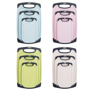 现货小麦杆三件套塑料菜板大理石纹切菜板套装可悬挂防滑加厚钻板