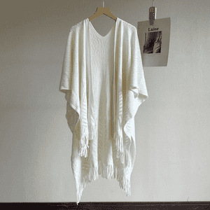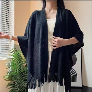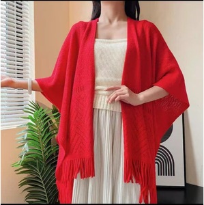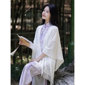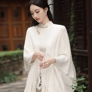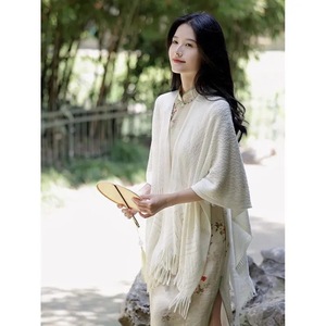 優しいチャイナドレス風ショールカーディガン、中華民国風のマント、爽やかで芸術的な無地、多用途なフリンジ付きニット透かし編み