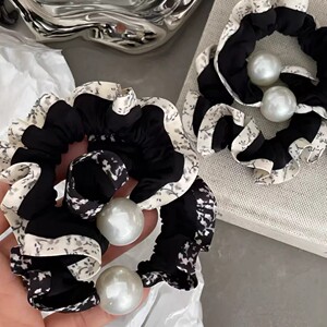 蕾丝波点珍珠发圈-黑色边
