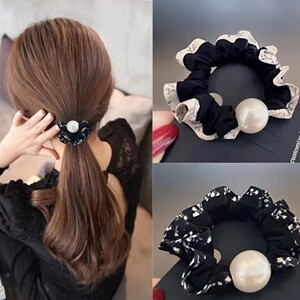 蕾丝波点珍珠发圈085