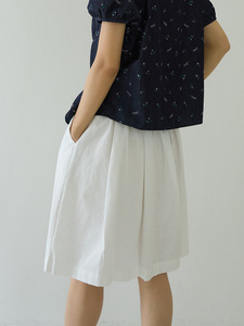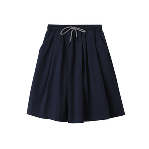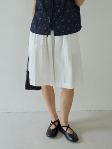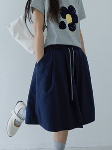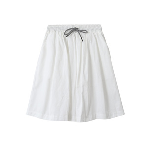 【OVVAN】テクスチャードカレッジスタイルコントラストドローストリングハイウエストパフスカートサマーミモレ丈スカート3008
