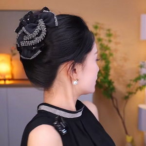 【パリ王女麦波】高級AB面気質11cmクリップヘアアクセサリー蝶結び後頭部ヘッドドレス
