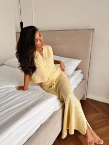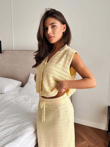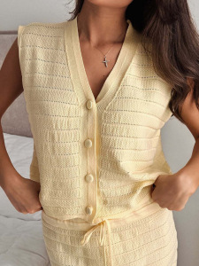 ヨーロッパとアメリカのシンプルなフレンチVネックルーズニッチ中空マイクロニットベストカーディガンレディースサマーハーフスカートスーツ