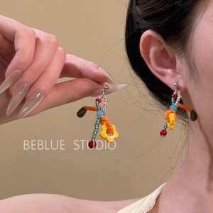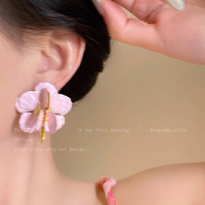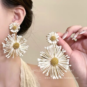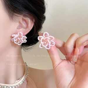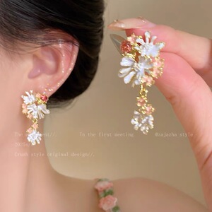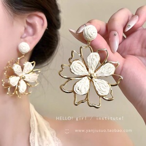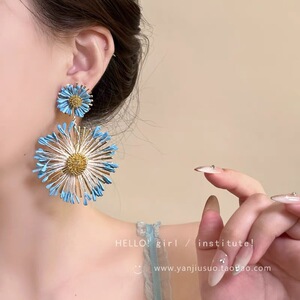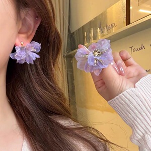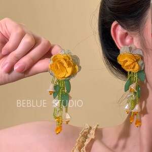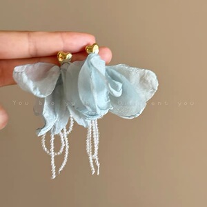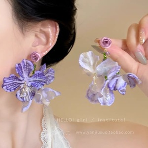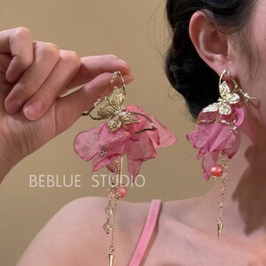 スーパーフェアリー誇張メッシュフラワータッセルイヤリングニッチデザイン絶妙な軽い豪華な個性ユニークな多用途イヤリング女性用