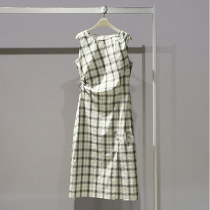 2025年夏新作チェック柄ノースリーブミドル丈ワンピース A1FAF2744