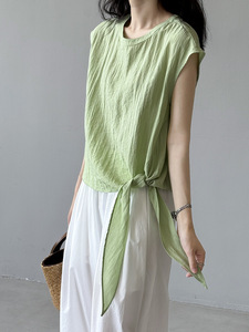 Yanshuang ラウンドネックウエストストラップノースリーブシャツ女性の夏の新しい気質痩身ベストトップ 82523