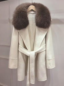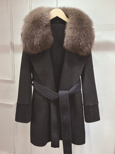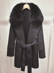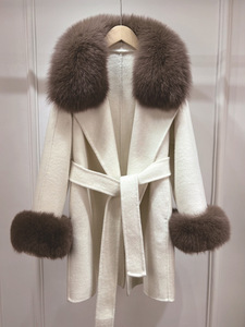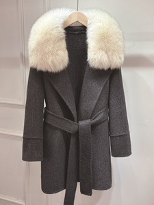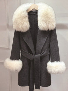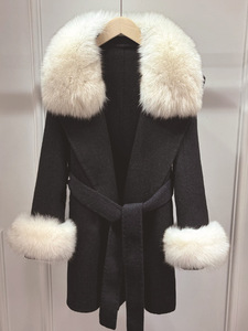 2025 東大門新両面カシミヤコート女性のミッドレングスフォックスファーネクタイ袖口ウールウールコートトレンディ
