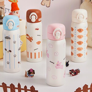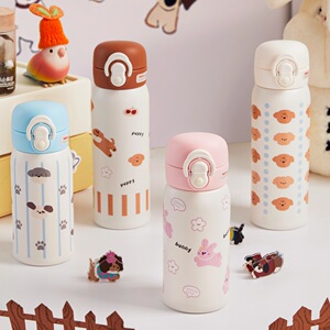 Diyimanquan シリーズ漫画ダブルドリンクカップ高品質ステンレス鋼断熱カップ学生バウンスカップストロー付き
