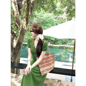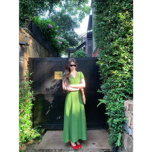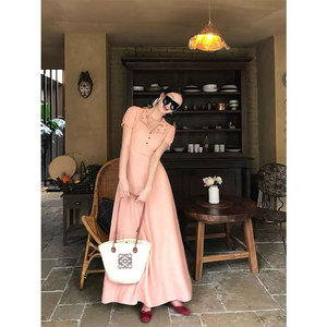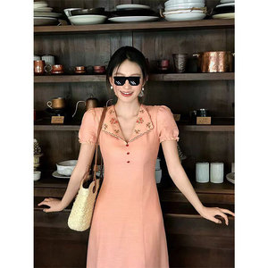 Yi&Yao バラクラバレトロライトフレンチ刺繍ラペルドレス女性の夏の気質痩身ロングスカート