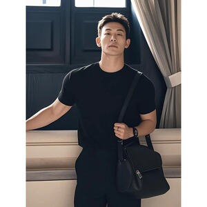 成熟した安定したメンズ袖口Tシャツ夏ネイビーブルーフィットネス半袖筋肉露出右肩スリムハーフスリーブ