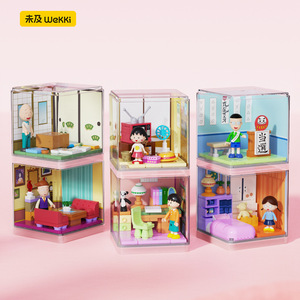 未及积木樱桃小丸子美好的一天盲盒小场景创意拼装潮玩玩具摆件