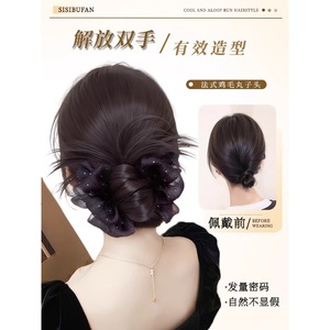 ローカットボールヘッドウィッグ、ダイヤモンドバタフライチキンフェザーヘッド、新しいつぼみスタイル、ふわふわ後頭部ウィッグバッグ
