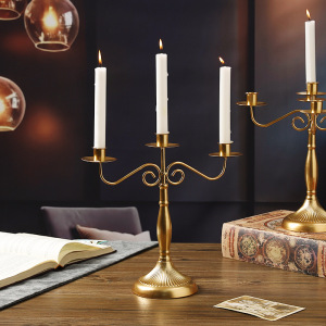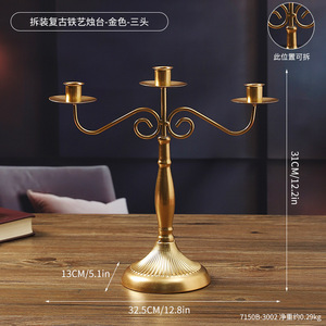 7150B-3002拆装复古铁艺烛台-金色-三头