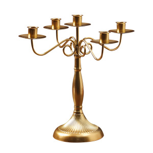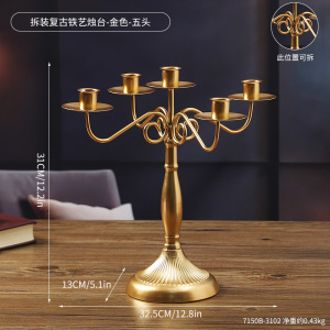 7150B-3102拆装复古铁艺烛台-金色-五头