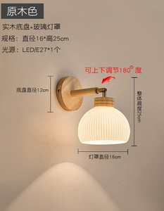 ベッドサイドウォールランプウッドカラー北欧無垢材中国風レトロ寝室廊下ランプ調節可能なモダンなシンプルな玄関ランプ