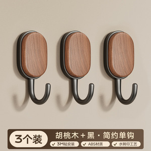 【ウォールナット色】3個入り【跡が残らない粘着フック1秒取り付け】