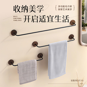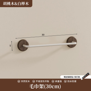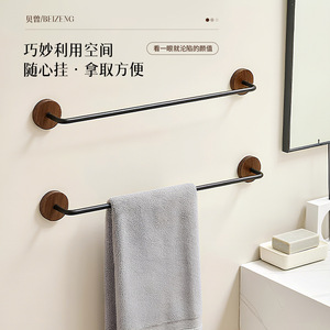 ウォールナットバスルームタオルラック、アンティークスタイル、パンチフリー壁掛けシングルロッドミニマリストバスルームタオル収納アーティファクト