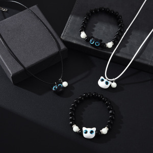 ホットセールチーズかわいい子猫発光ブレスレットネックレスライブホットセールカップル漫画小さな黒猫アクセサリーネックレス