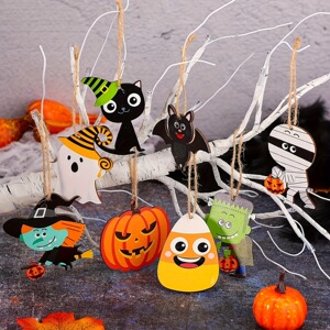 新しい木製ハロウィンツリージュエリークラシックカボチャ魔術帽子コウモリミイラフランケンシュタイン装飾ペンダント