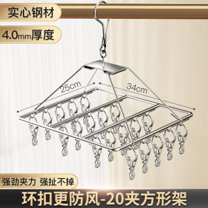 ステンレス製の衣類乾燥ラック、複数のクリップ、正方形、痕跡のない家庭用衣類吊り下げラック、厚い靴下、下着、下着乾燥ラック