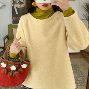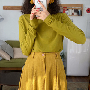 柔软绒面芥末绿打底衫女秋冬内搭轻薄保暖修身长袖百搭半高领恤
