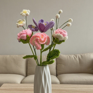 クロスボーダーチューリップクローバーローズスノーフルーツ手織りウールブーケリビングルームホームデコレーション造花