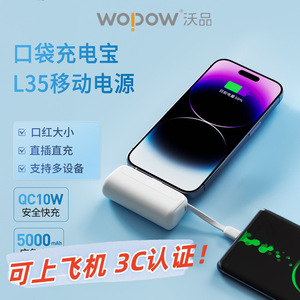 【国家3C認証】WOPOW ポケットパワーバンク 5000mAh コード内蔵モバイル電源 L35