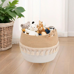 国境を越えた供給綿ロープ織り収納バスケット汚れた衣類バスケットランドリーバスケットおもちゃの整理ラウンドタッセルバスケット卸売
