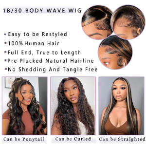 13X4ハイライトレースフロントウィッグ人毛1B30ヨーロッパとアメリカのかつら人毛