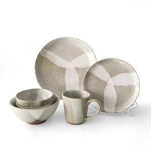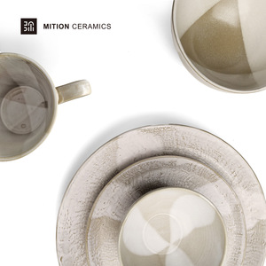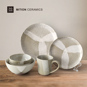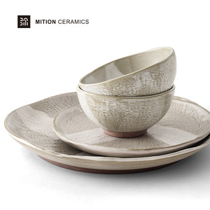 日本のレトロな粗い陶器の食器わびさびスタイルのセラミックボウルと皿セット家庭用ボウルと皿マグメーカー卸売