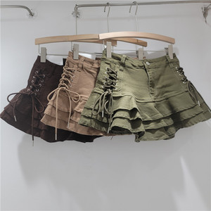 ニッチデザインホットガールストラップケーキスカート女性の甘辛弾性年齢軽減デニムAラインスカートふわふわプリーツスカート