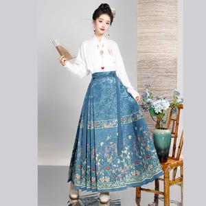 Xunxiangの新しいスリムジャカード馬面スカート、多用途の漢服女性モデル、新しい中国風、国民風、漢要素、日常着