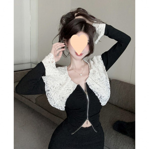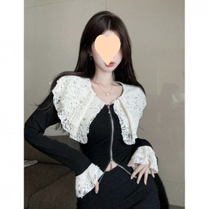 フレンチデザインニッチ長袖シャツ女性のための2025秋冬レースネイビーカラーステッチプリーツジッパーボトリングシャツ