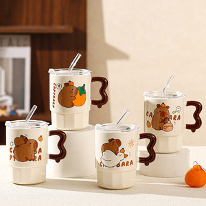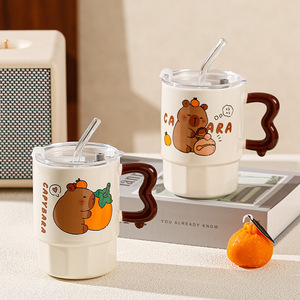 超かわいい漫画カピバラカピバラセラミックカップマグホームライフ実用的なストローカップデパート卸売
