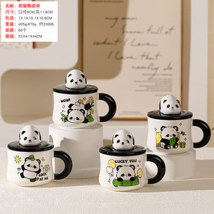 漫画のパンダ (カップ + 蓋 + スプーン)