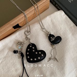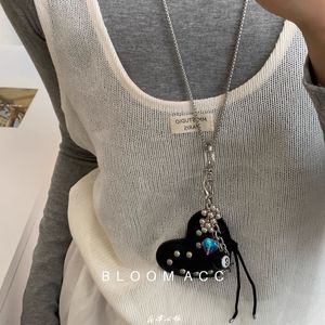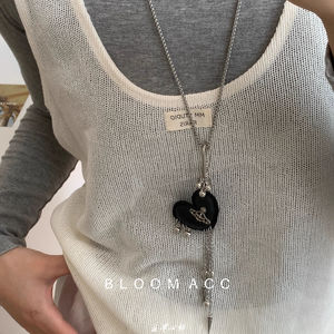 韩国ins风黑色爱心挂坠项链女小众高级感气质锁骨链长款服饰配饰
