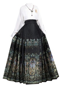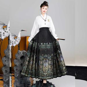 新しいスタイルの翡翠と鳳凰の模様の金織り馬面スカート、明代の漢要素、毎日の通勤、新しい中国風のスカート
