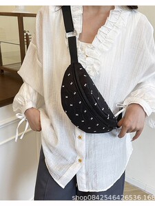 韩系小众蝴蝶结腋下包蕾丝布包撞色时尚百搭单肩甜酷辣妹保龄球包