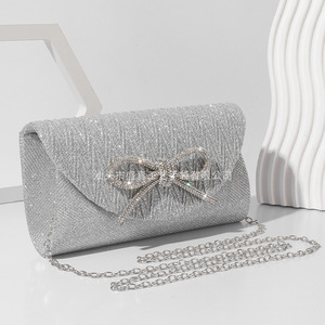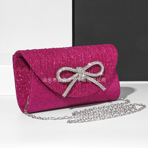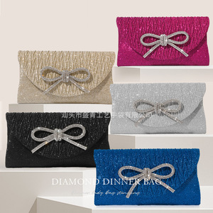 ファッションちょう結びレディースバッグエレガントな気質 2025 ヨーロッパとアメリカの新しいイブニングバッグ光沢のある高級クラッチバッグ卸売