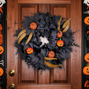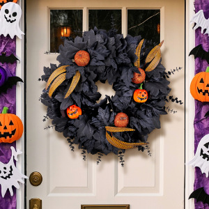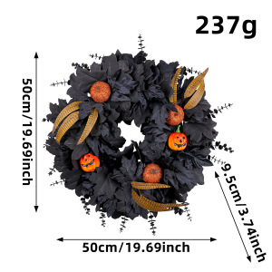 H2-41 ハロウィン ブラック メープル リーフ パンプキン リース