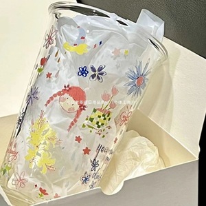 ネットセレブと同じスタイルの落書きドーパミンカップ、フリップトップガラスカップ、高価値ウォーターカップ、家庭用夏インスタイル朝食