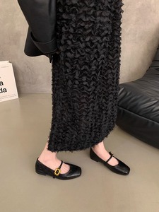 本革シルバーメリージェーンシューズ女性用2025春秋新作多用途ソフトソールフラットソールスクエアトゥ浅い口ストラップシングルシューズ