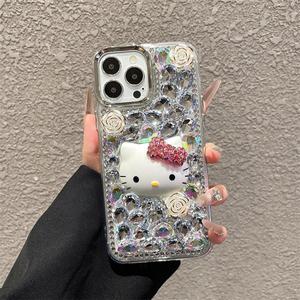 水钻适用苹果14567promax水钻手机壳 XSMAX 凯蒂猫奢华满钻保护套
