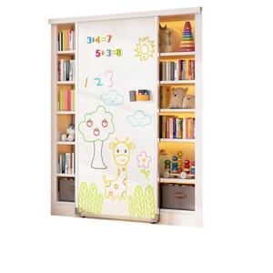 プッシュプルホワイトボードドア付き家庭用錬鉄製本棚リビングルームベッドルームフロアラック本棚組み合わせ子供用本棚