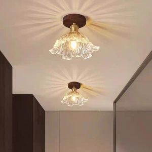 新しい中国風の通路ライトシーリングライトモダンなシンプルなクルミガラス玄関バルコニー廊下キッチンとバスルームの玄関照明