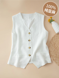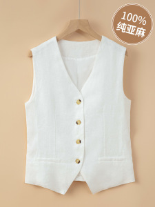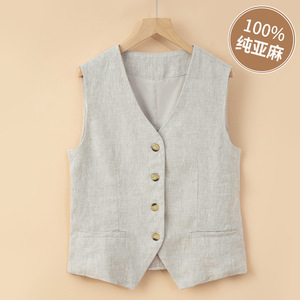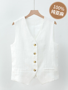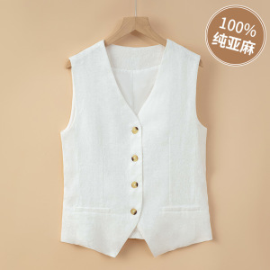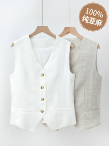 高端100%纯亚麻老钱风西装亚麻马甲女夏季单穿外搭薄款背心小马夹