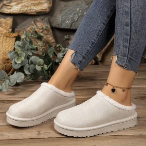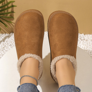 女性用の柔らかい底の快適なビルケンシュトックシューズ、厚底ハーフスリッパ、秋冬ベルベットの暖かいつま先スリッパ、スリッポンスエードコットンシューズ