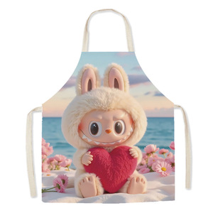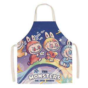 Labubu 漫画生地エプロンベーキングキッチンホームパーソナライズクリエイティブアートギフト防汚カバーオール