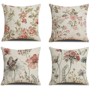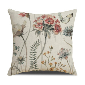 北欧植物花朵办公室亚麻沙发靠垫家居抱枕套办公室午睡抱枕头批发