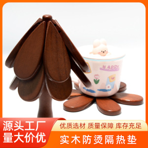 クリスマスツリー断熱マット木製コースターデスクトップ木製ポットマット折りたたみ木製ティーカップベース装飾品